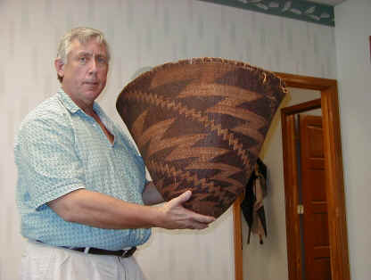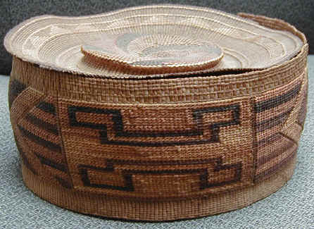 basket is of white beargrass & red bud full twist. Twined overlay with